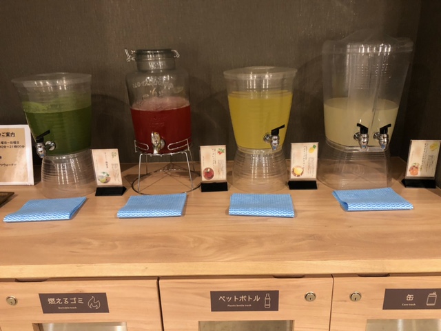 上がってから、脱衣所に並んだ、4種類のドリンクが!
